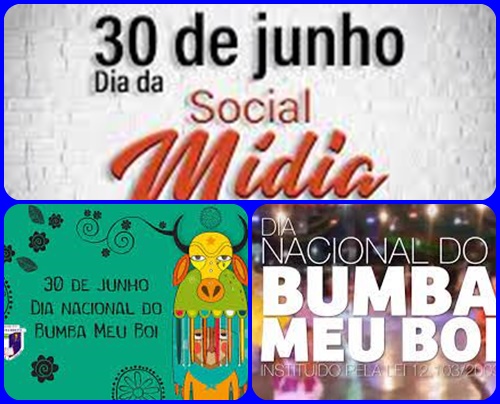 30 DE JUNHO – Dia do Bumba Meu Boi, Dia da Mídia Social. 30 de junho de 2021 Nenhum comentário Ler mais >>
