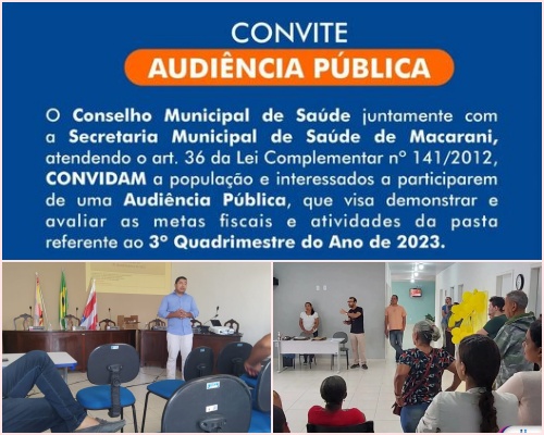 AUDIÊNCIA PÚBLICA – Conselho Municipal e Secretaria de Saúde promovem audiência pública nesta quarta-feira na Câmara. 27 de fevereiro de 2024 Nenhum comentário Ler mais >>